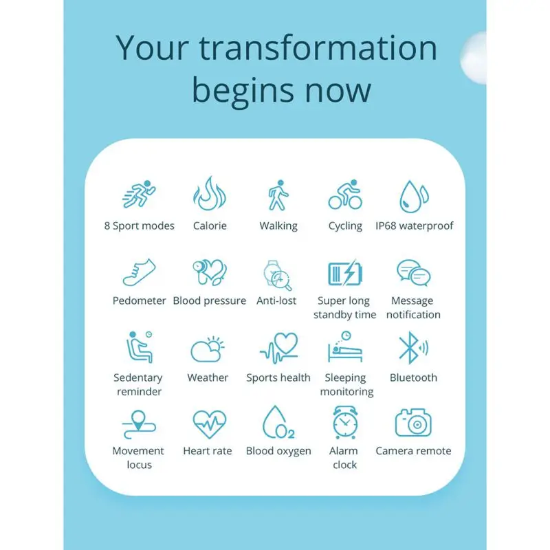 Waterproof Durable IP68 Fitness Track Smart Watch Heart Rate Blood Pressure Monitor Band Sport Watc