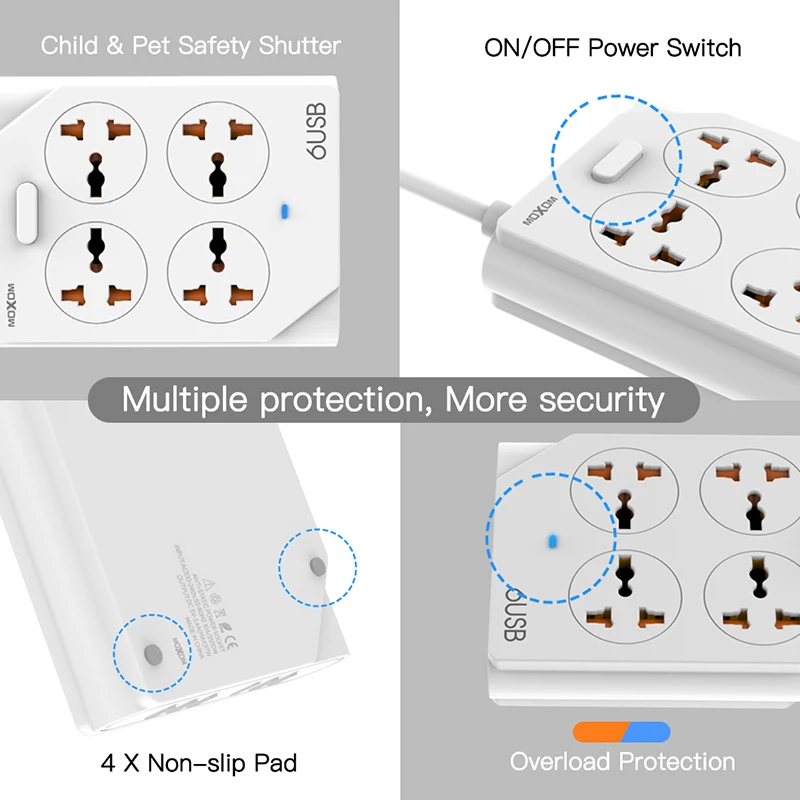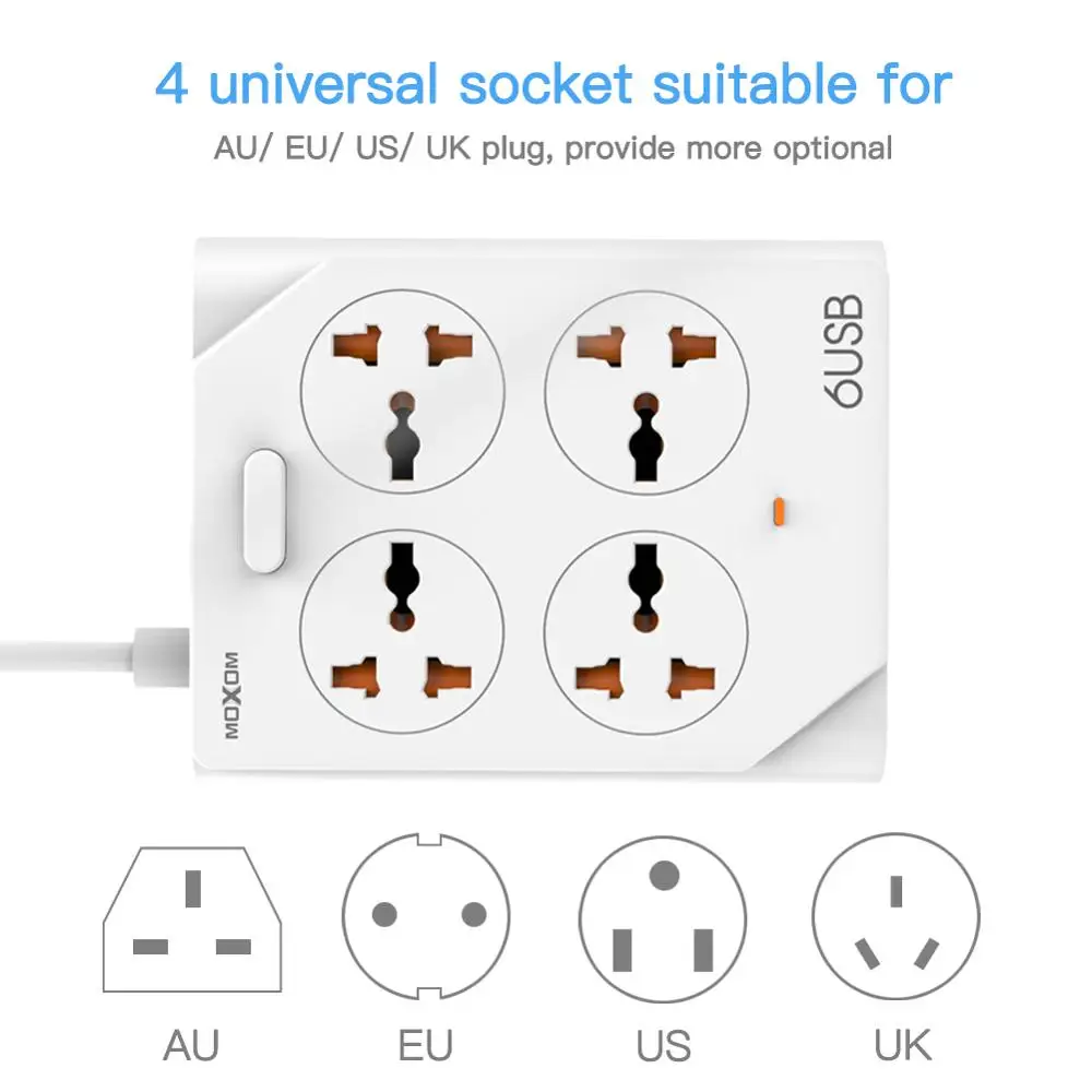 HOT SALE MOXOM Smart Home Electronic Power Strip Socket Fast Charging 6 USB + 4 Sockets Standard Plug Interf