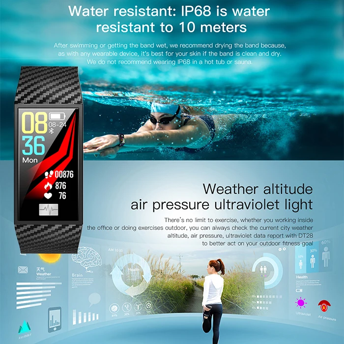BEST ECG PPG HRV Smart Watch Weather Heart Rate Tracker Blood Pressure wristband IP68 Waterproof band Sp
