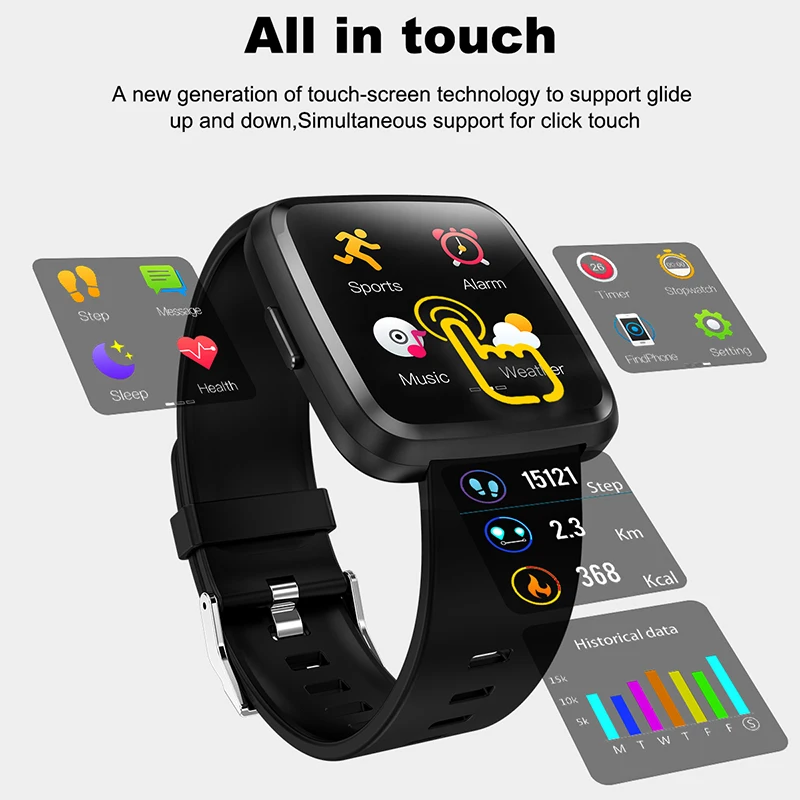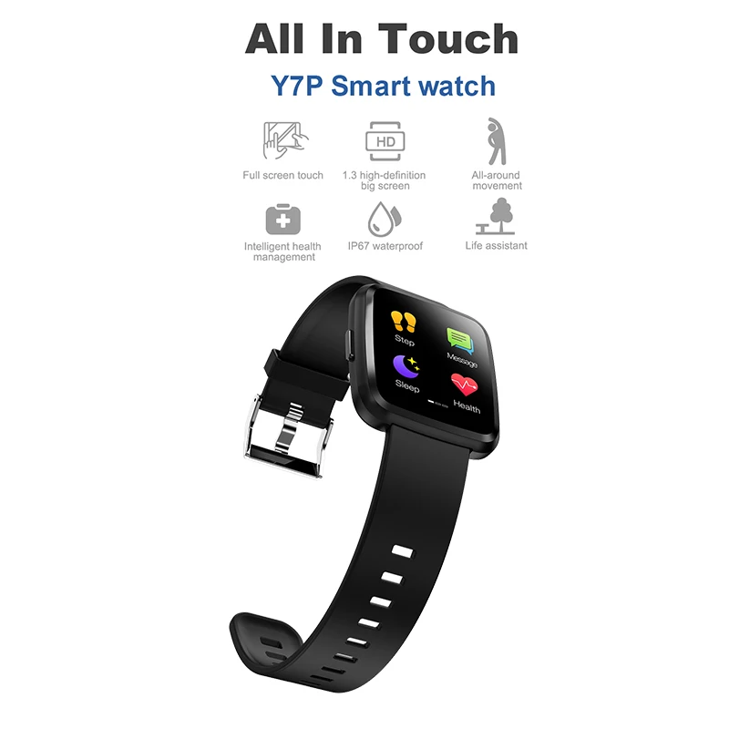 Y7P Smart Bracelet Heart Rate Monitoring Fitness Tracker Full Press Screen Outdoor Sports Smartwatc